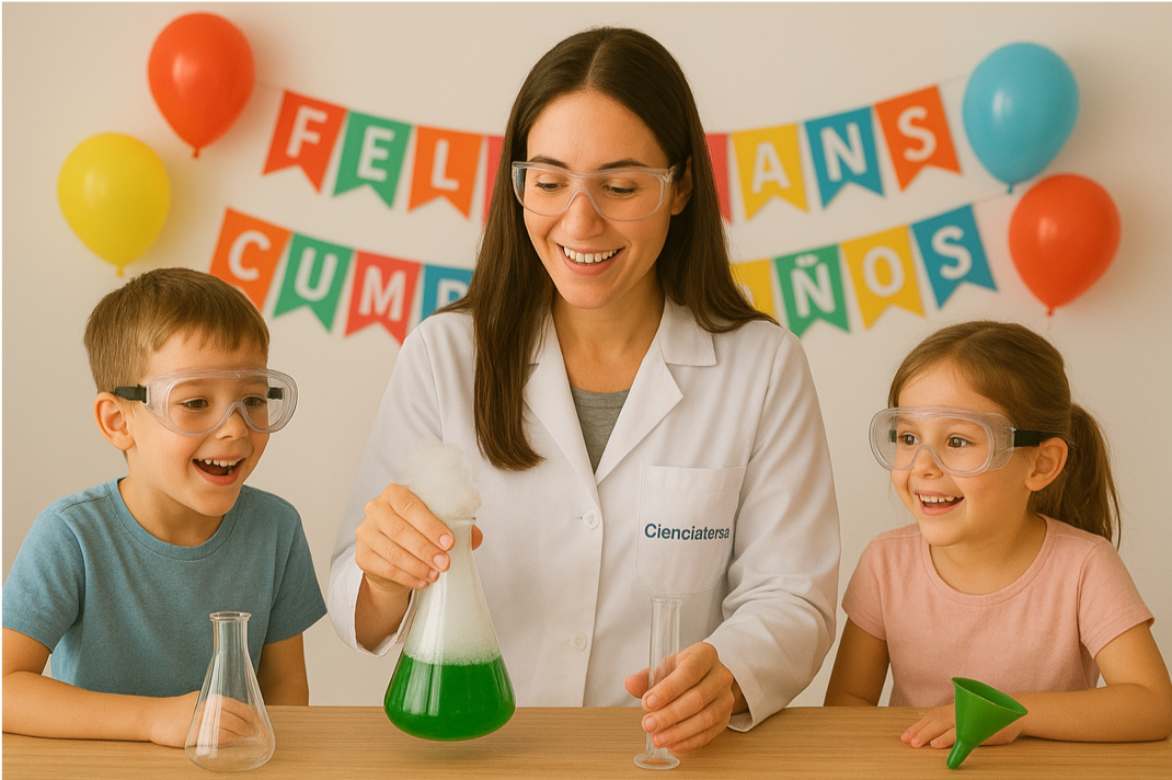 Nuestros Cienciaterapeutas también van a cumpleaños, colegios y comuniones para que los más pequeños disfruten de la ciencia mientras ayudan a nuestros pacientes con cáncer.